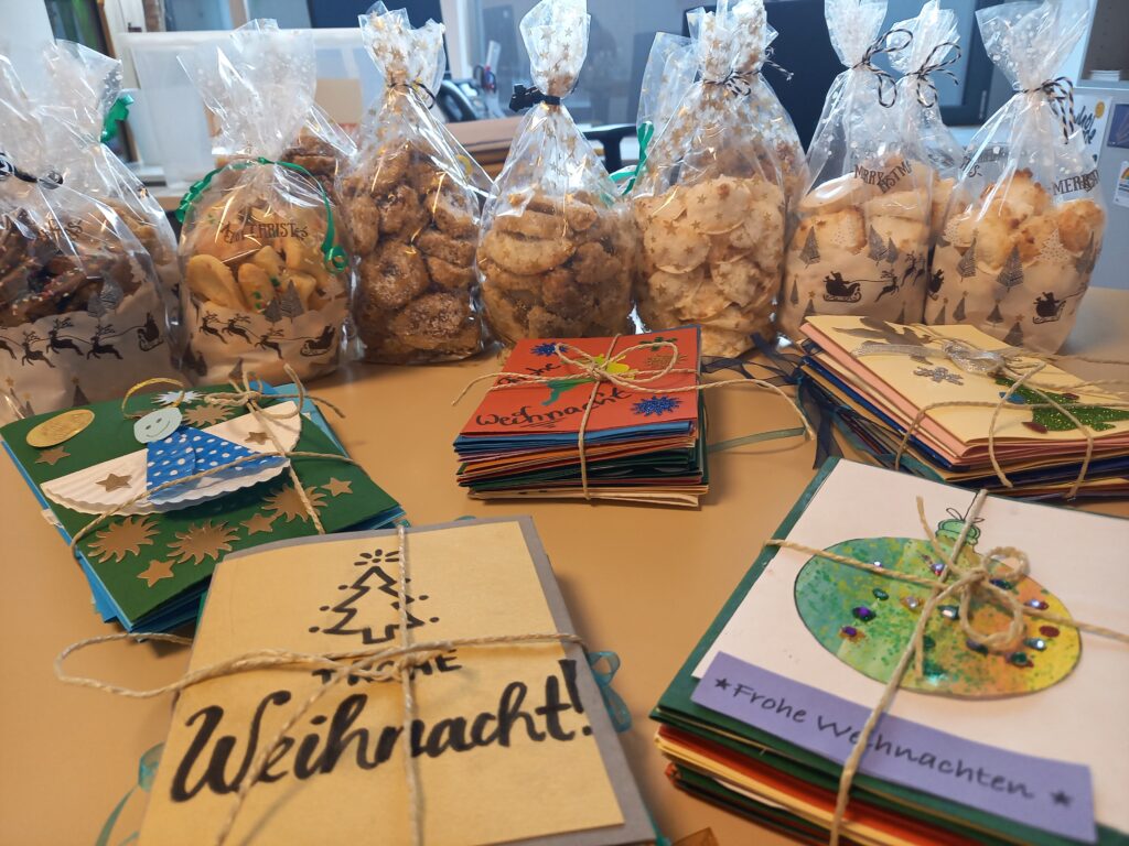 Schülerinnen und Schüler der Friedensreich Hundertwasser-Schule unterstützen diese besondere Weihnachtsfeier bereits seit vielen Jahren und sie haben auch dieses Jahr wieder Weihnachtskarten gebastelt und jede Menge Plätzchen gebacken. Die selbst gebackenen Plätzchen und die bunt gestalteten Weihnachtskarten der Schülerinnen und Schüler geben der Weihnachtsfeier eine persönliche Note und sind ein Zeichen der Verbundenheit.
