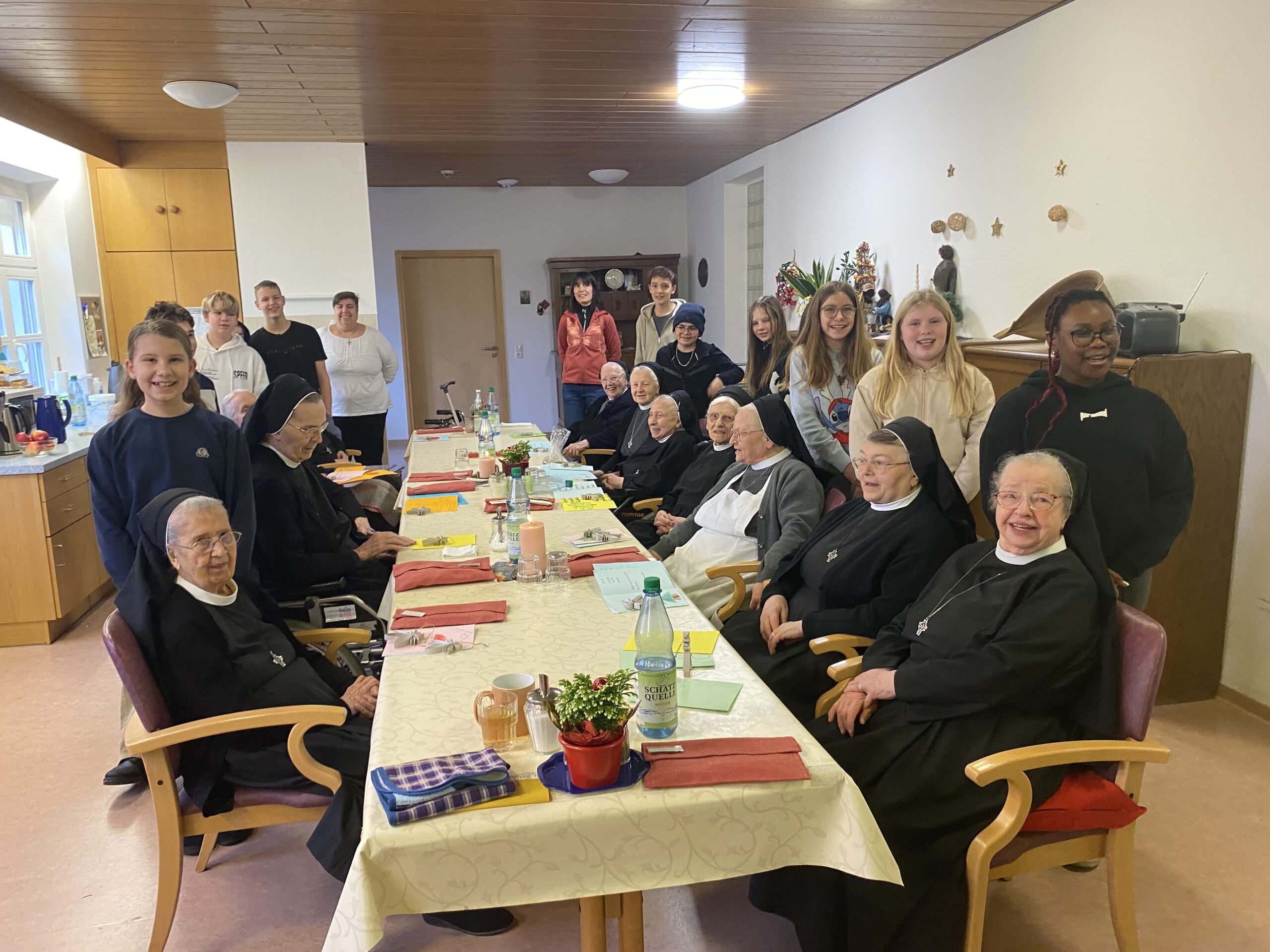Am 16. Dezember 2025 besuchte eine Schulklasse der Städtischen Wirtschaftsschule Würzburg die Ordensschwestern im Haus Hannah der Kongregation der Ritaschwestern in der Sanderau.