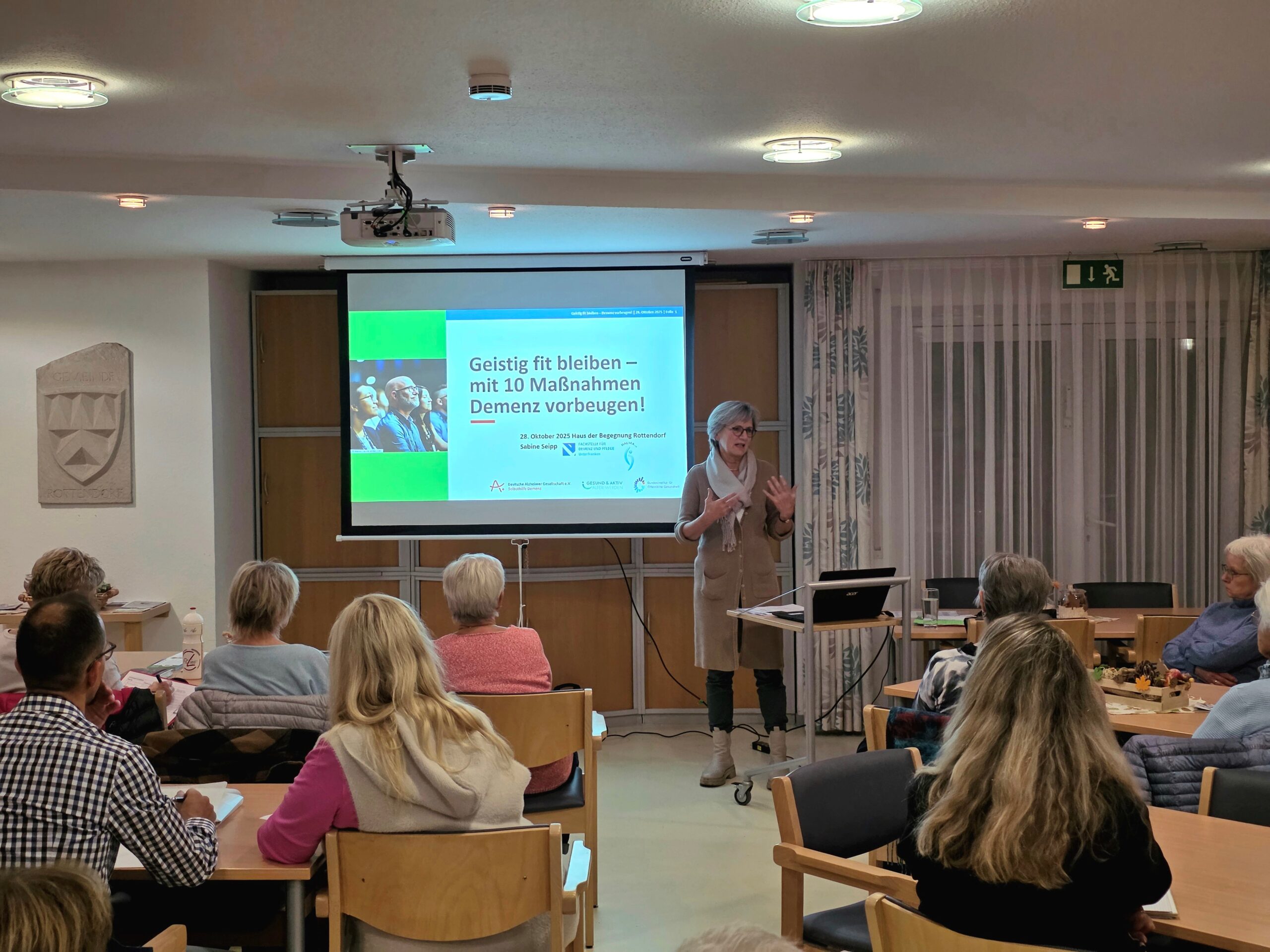 Großes Interesse am Vortrag zur Demenzprävention im Haus der Begegnung Rottendorf. Das Haus der Begegnung (HdB) war bis auf den letzten Platz besetzt. Dem Aufruf des Gesundheitsstammtischs, organisiert von Gaby